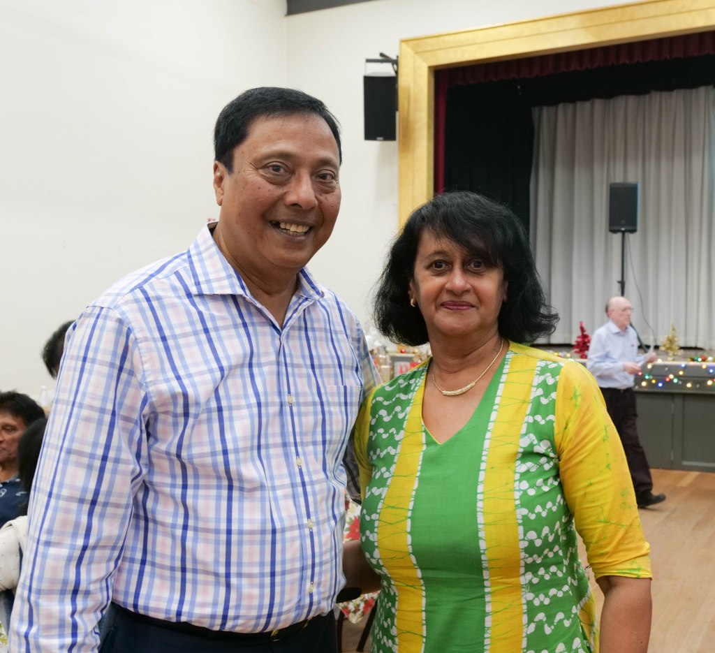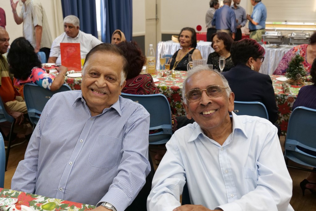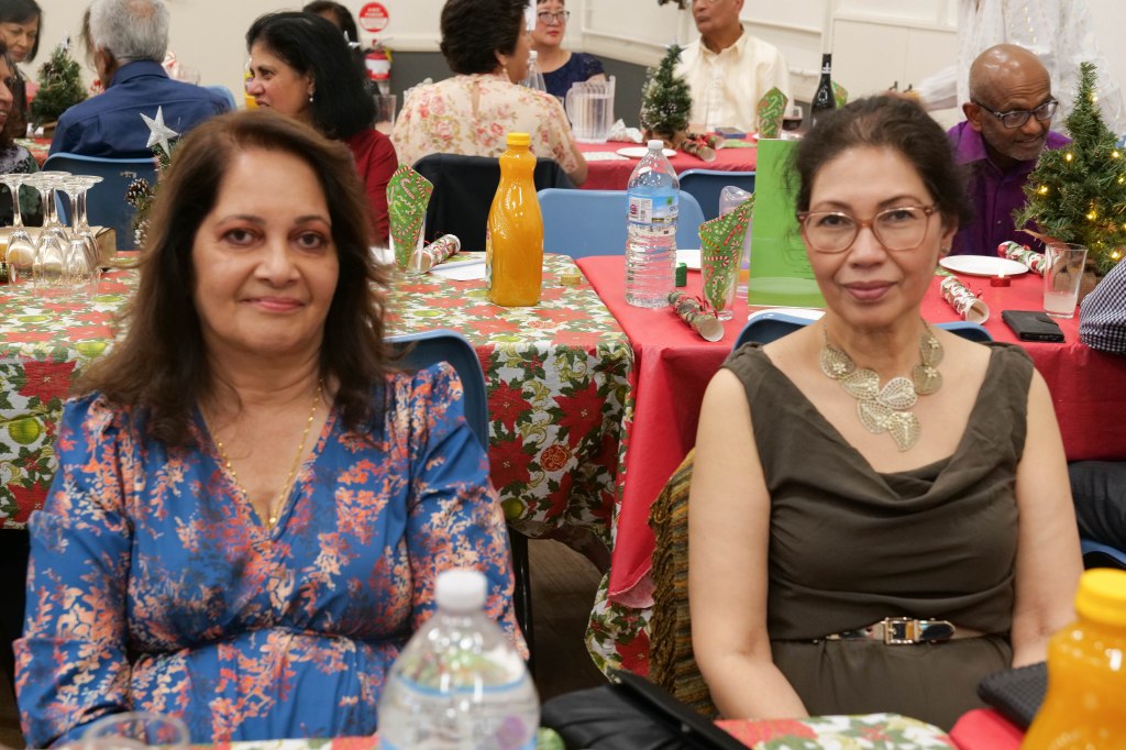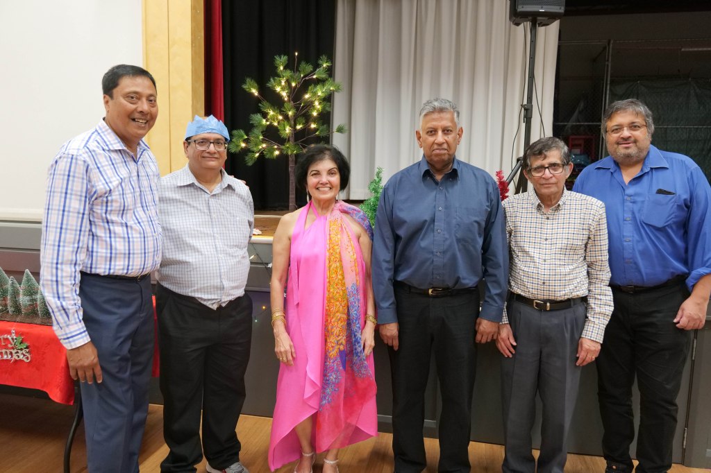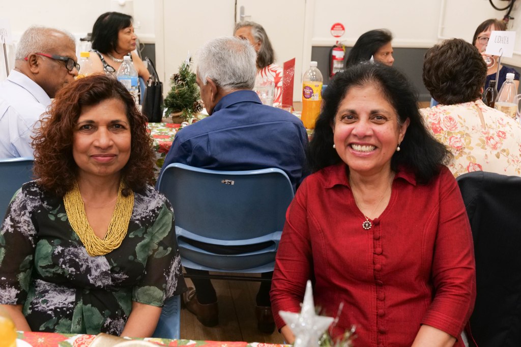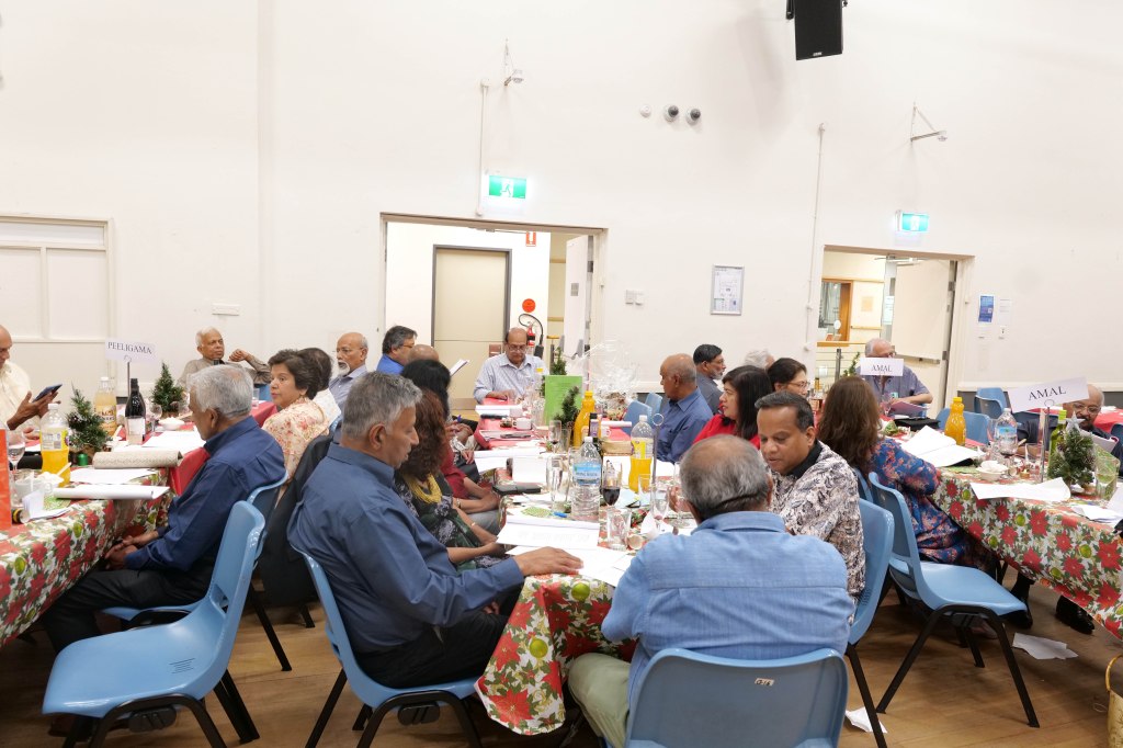 Food Glorious Food – Everyone tucking inThiru Arumugam reading answers to the Trivia Quiz Thiru Arumugam with winner of Trivia Prize Indrajith ImbulanaCSA Choir accompanied by Shirani RodrigoEveryone joining in for the singalongThiru Arumugam and Pauline Gunewardene drawing the Raffle
