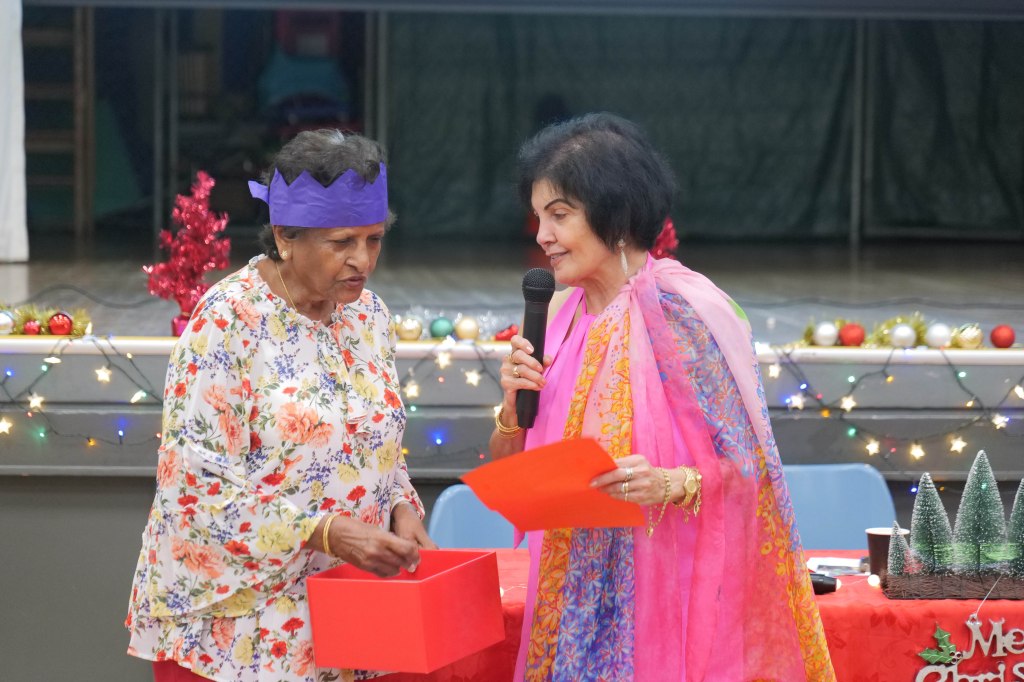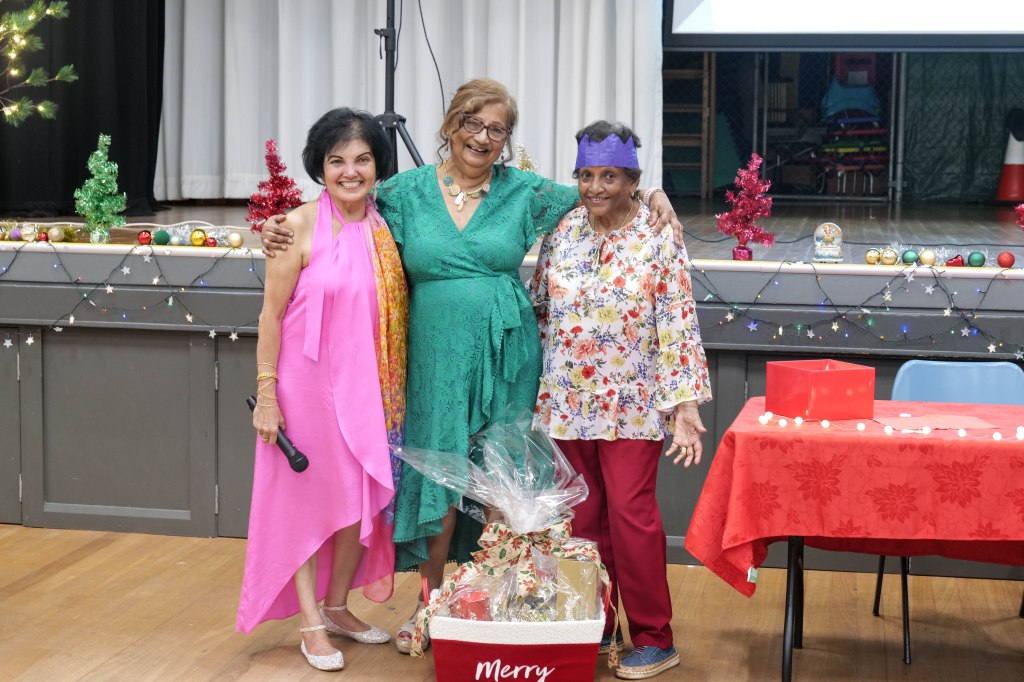 Winner of Lucky Door Xmas Hamper Hyacinth Jones with Malini Arumugam and Pauline Gunewardene